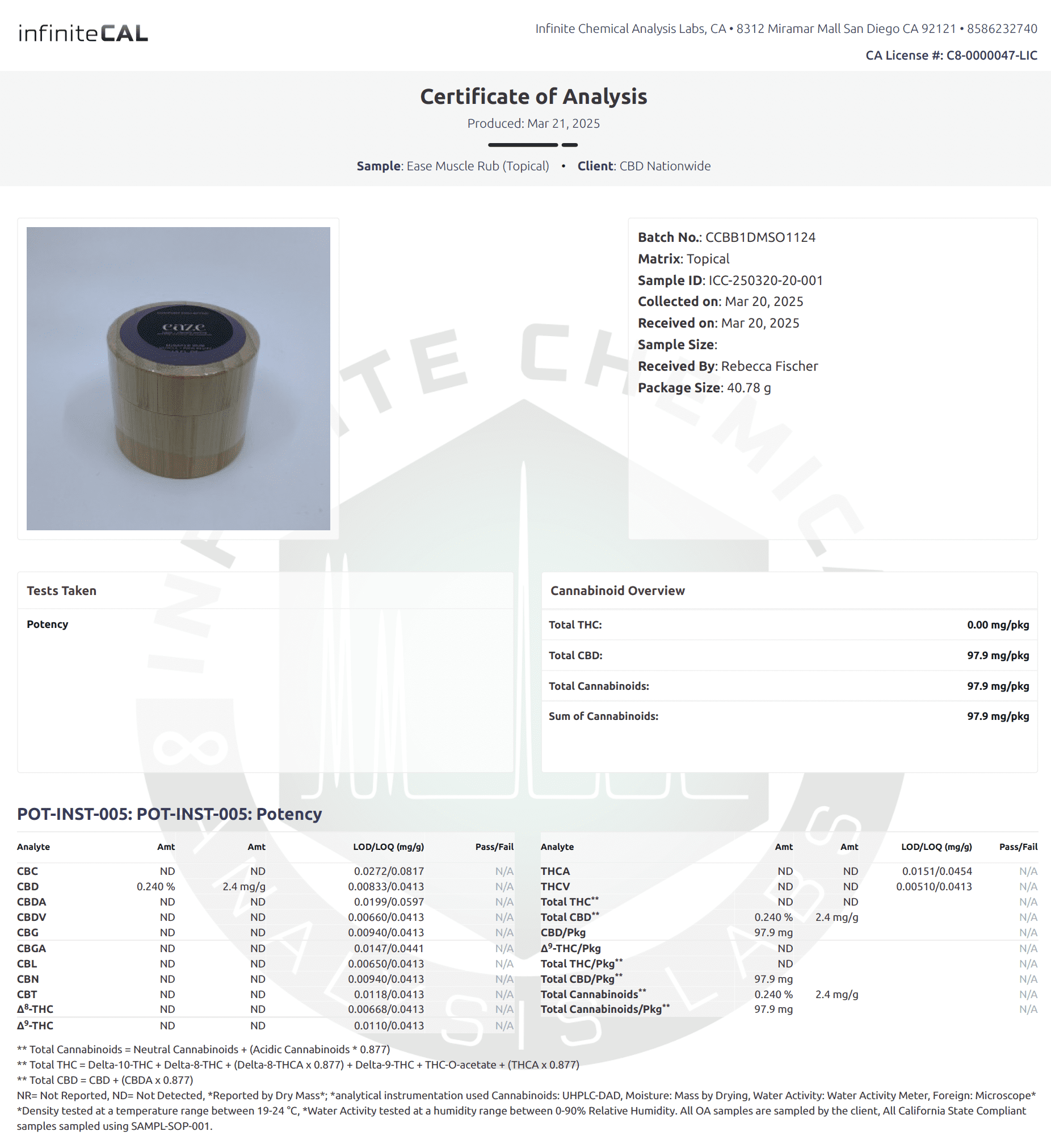 CERTIFICATE OF ANALYSIS